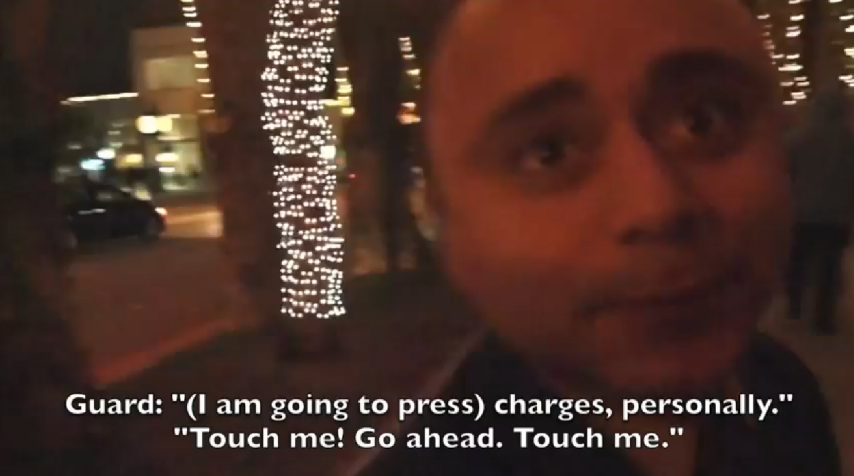 Mission Inn Security A. Appello, stated to the cameraman that he was not authorized to film here, though it was a public sidewalk. He was also told not he did not give him permission to film himself, a private citizen, though in reality, was under the employment of the Mission Inn. He was so annoyed, that A. Appello evidently called RPD or his capo di tutti capi (boss of all bosses) which at the Mission Inn would be non other than Duane Roberts, or some now mentioned his wife Kelly Robert is now running the inn. Mission inn security states that the photographer did not have his permission to film him, though he was on public property. People have told me the Mission Inn was a tad bit on the pretentious side, but maybe stating a citizen could not film on public property would appear to be a bit to much. Peter Demian, Mission Inn Security, stated he would press charges personally, then suddenly blurted out, “Touch Me, Go Ahead, Touch Me”! and then gets closer to the cameraman with his face in front of the camera, as if he expected John to do something….as indicated in his video coverage. Peter Demian, Mission Inn Security, stated that RPD will confiscate his camera and film, and that he will be personally filing charges, and that he was going to jail that night. He then continued to follow and intimidate the cameraman by remaining very close. He continued to follow him away from the Mission Inn jurisdiction, and continued to taunt, that he will take his name tag off and now be a citizen, which meant? Not sure. But he later did, and showed it to the cameraman, John Dingler. Then he continued to insult. Mission Inn Security Peter Demian, calls John a “Loser”, “To get a Life” and the incomparable, “You look like a clown”. So, according to Mission Inn security it is against the law to film any private citizen on public property without their permission. But no one else filming there within the public arena of the Mission Inn was told the same, or had threats that their camera and film would be confiscated…