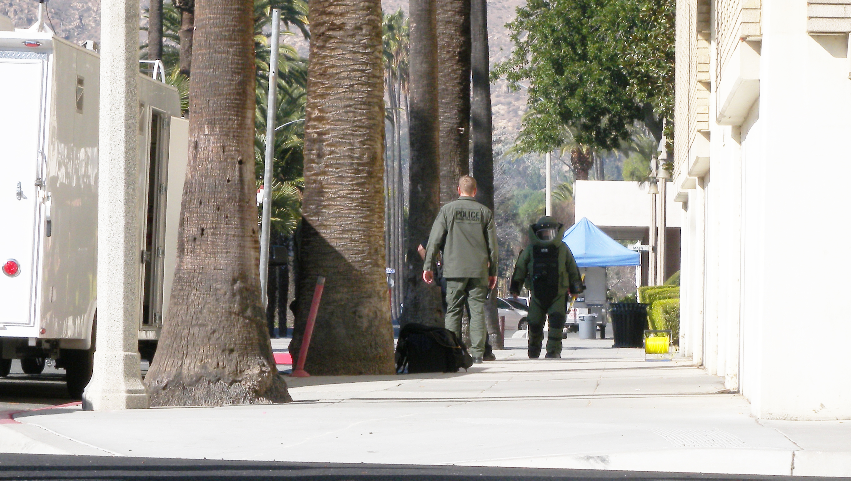 THIS MORNING BOMB THREATS HAVE ENSUED THE CITIES OF RIVERSIDE AND SAN BERNARDINO, SPECIFICALLY THE COURTHOUSES. PEOPLE WERE EVACUATED, AND AROUND 11:40AM, AN OFFICER YELLED “FIRE IN THE HOLE”, AND LOUD BLAST WAS HEARD. ACCORDING TO SHERIFF OFFICIALS, EXPLOSIVE CREWS DETONATED A SUSPICIOUS OBJECT. A CITY OF RIVERSIDE’S CHIEF OF POLICE SERGIO DIAZ STATED, “THERE WAS NO EVIDENCE THAT ANY OF IT WAS EXPLOSIVES”. SECONDARY DETONATION WAS HEARD A BIT AFTER 12:00 NOON. IT APPEARS THREE SUSPICIOUS ITEMS WERE FOUND, TWO WERE DESTROYED, ONE ITEM BEING A FONTANA ATTORNEY’S BRIEFCASE. THE FIRST CALL CAME IN BEFORE 8:00AM FROM A BLOOMINGTON PHONE BOOTH, WITH A BOMB WARNING TO THE SAN BERNARDINO JAIL AND COURTHOUSE, AND THE SECOND CALL WAS AFTER 8:00AM WARNING OF A BOMB AT COURTHOUSE’S IN THE CITY OF RIVERSIDE. THIS IS WHAT IS HAPPENING TODAY IN RIVERSIDE. CITY OF RIVERSIDE MAYOR RON LOVERIDGE’S STATE OF THE CITY SPEECH IS EXPECTED TODAY , THE NEW TEQUESQUITE PARK GROUND BREAKING CEREMONY THIS AFTERNOON, THE MEETING WITH IMMIGRATION OFFICIALS AND ACTIVIST’S FOCUSED ON ISSUES OF DEPORTATION IN RIVERSIDE AND SAN BERNARDINO , THE HEARING REGARDING THE CITY OR RIVERSIDE POSITION ON RECUSING A BLACK JUDGE IN THE RPD SARGENT VALMONT GRAHAM’S RACISM CASE AND STUDENT PROTESTORS DISRUPT UC REGENTS MEETING REGARDING INCREASE TUITION COST.