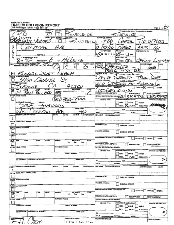 RIVERSIDE POLICE REPORT AND CHARGES AGAINST RUSS LEACH