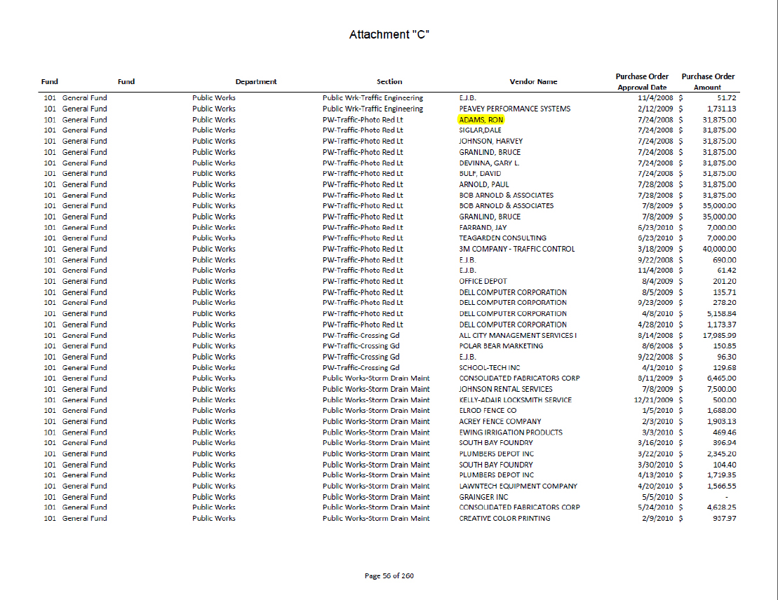 Favoritism by the City toward Mark Rubin cannot be documented, that is true. I agree with the DA’s office, this would be a hard nut to crack without solid evidence, such as bribery. But is it plausible to connect favoritism to the definition of nepotism? Nepotism occurs in the city, but never addressed. We have an instance such former councilman and mayoral candidate Ed Adkison at the Friday Morning Club Janet Goeskie Senior Center on February 23, 2012 stating that the City’s relationship with Connie Leach was ‘nepotism’. Adkison was on the council during the Connie Leach allegations. We also had councilman Steve Adams brother reviewing red light camera tickets.