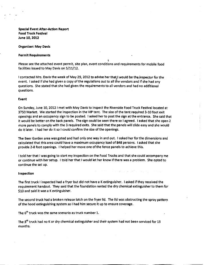 We are not assuming Paul is right, I don’t believe we said that he was event right. I did say he was right in that many people say how hard it is to do business in Riverside. But based on the information at hand and how council handled the complaint, the process appeared rather questionable. But the council says it’s true, based on their investigation with the fire inspector. They said quite clearly, it was “founded”. We noticed it disconcerting that Davis was not interviewed by the investigator. The associations of these individual with each other were also quite remarkable. Based on the redacted report, we brought some of the information to the forefront, and deduced other avenues of possibilities based on the information at hand. We do not have a name of the inspector on the report in order to get another side of story. If there is anything you wish to add or submit, or that contradicts what is written we will modify the post. Christy, if you were a witness there, can you tell us exactly what happened?