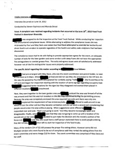 The event in question known as the “Food Truck Festival” took place May 29th, 2012. Now to begin with, the Intake Interview was done by Steven Espinosa and Human Resources Director, AKA “Luxury Girl”, Rhonda Strout. Ms. Strouts Lexis license plate states “Luxury Girl”.