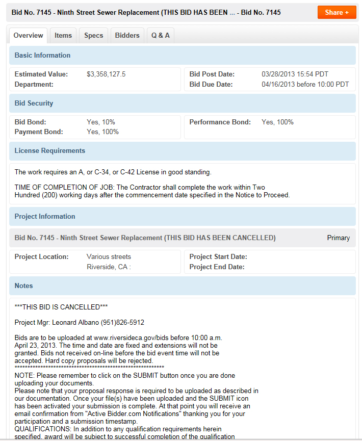 In what appears to be a routine sewer replacement on 9th street also appears to have been cancelled. Does the City of Riverside lack the $3,358,127.50 in the sewer funds to initiate and complete a maintenance upgrade project?