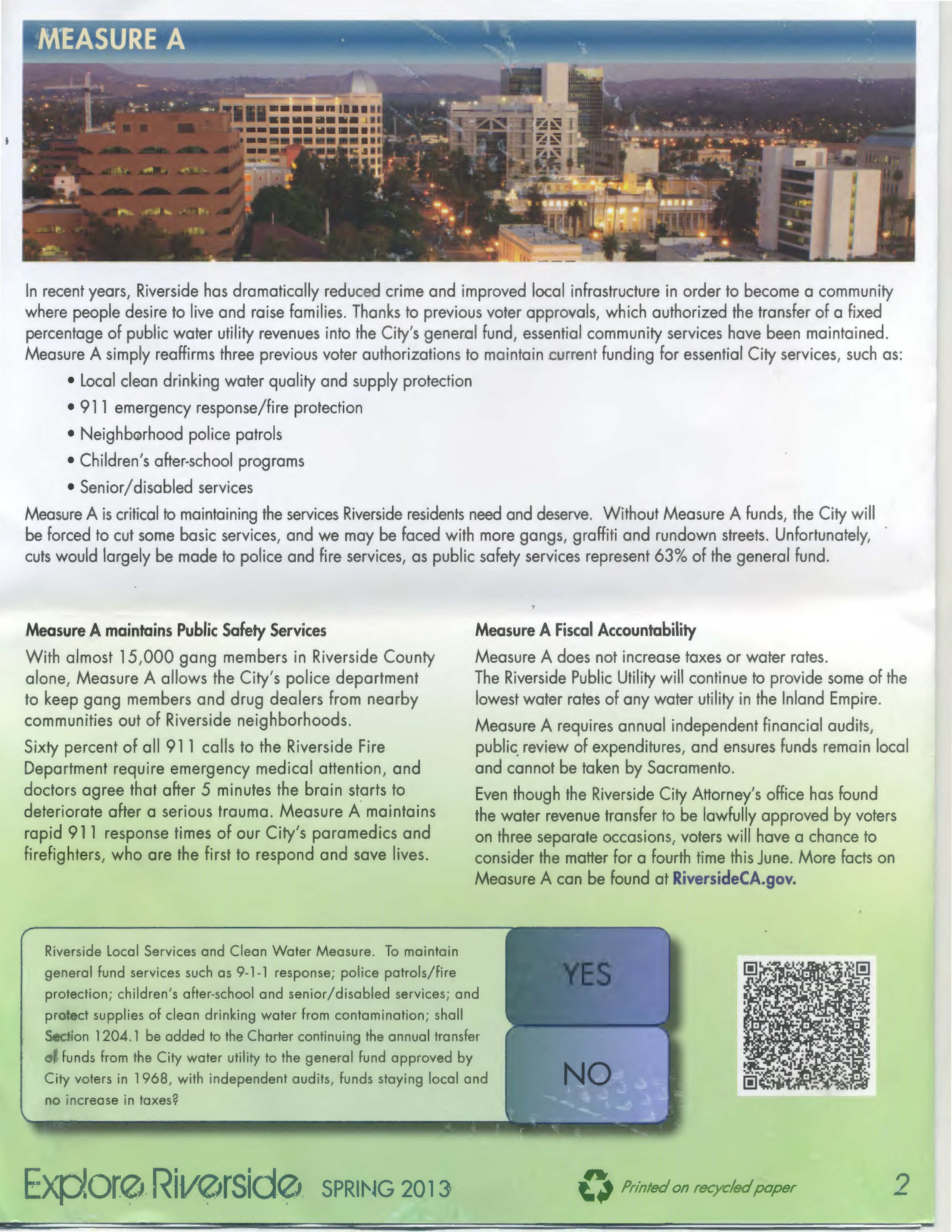 But the City continues to print information in support of Measure A as in the Explore Riverside.