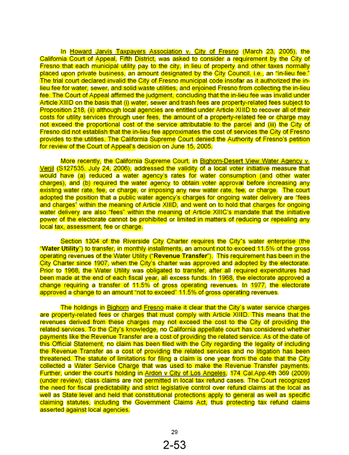 But down the line we also noticed that in a letter to Mark Hill, Department of Finance for the State of California, our City Manager Scott Barber brought to his attention some possible conflicts with Proposition 218. Further example of the City of Riverside knowingly understanding the impact of a violating Proposition 218.