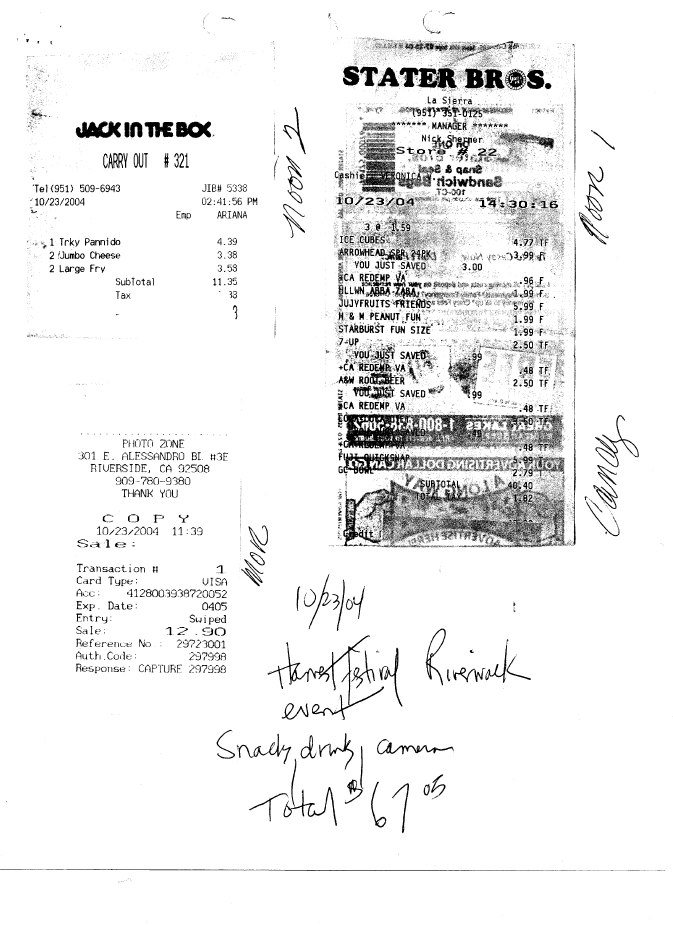 Connie Leach, the wife of Chief of Police Russ Leach and hired by the City of Riverside as an independent contractor to oversee the Multicultural Youth Organization, which was a youth program initiated by former Mayor Loveridge. She was hired by contract to run this project, she also had an extravigant expense account that was paid for by the taxpayer. Most organizations have donations pay for expenses. Here are some of the receipts we found.