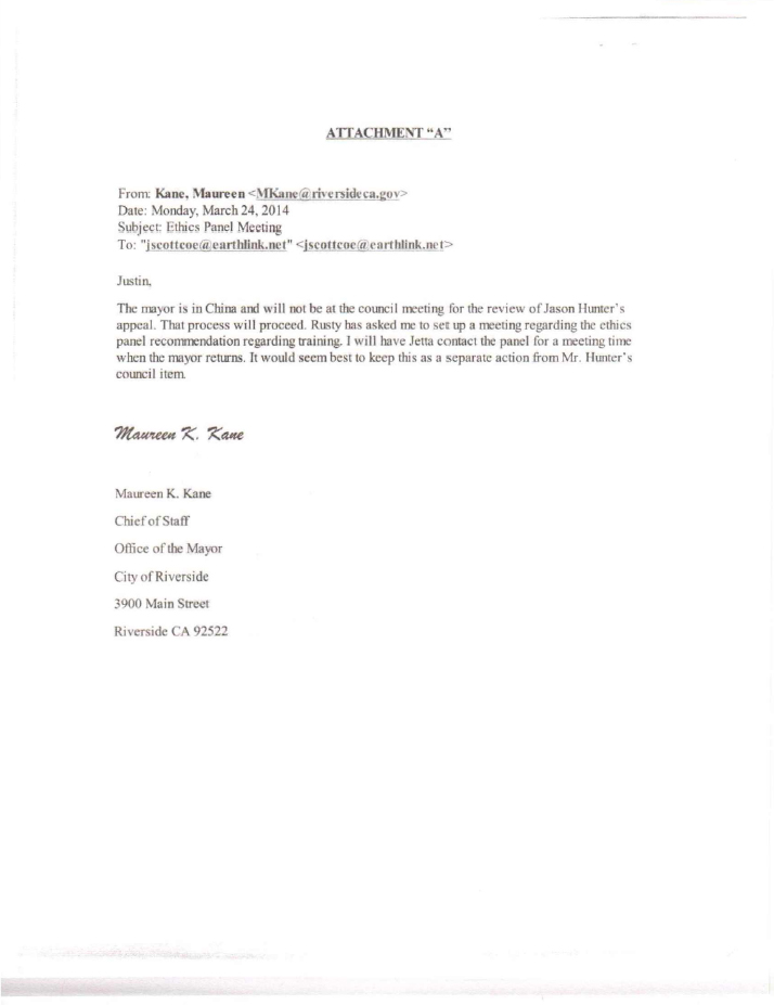 DID THIS EMAIL FROM CHIEF OF STAFF MAUREEN KANE INFER THAT THE MAYOR’S OFFICE WAS INTERFERING WITH THE CODE OF ETHICS & CONDUCT REVIEW PROCESS?(CLICK IMAGE TO ENLARGE)