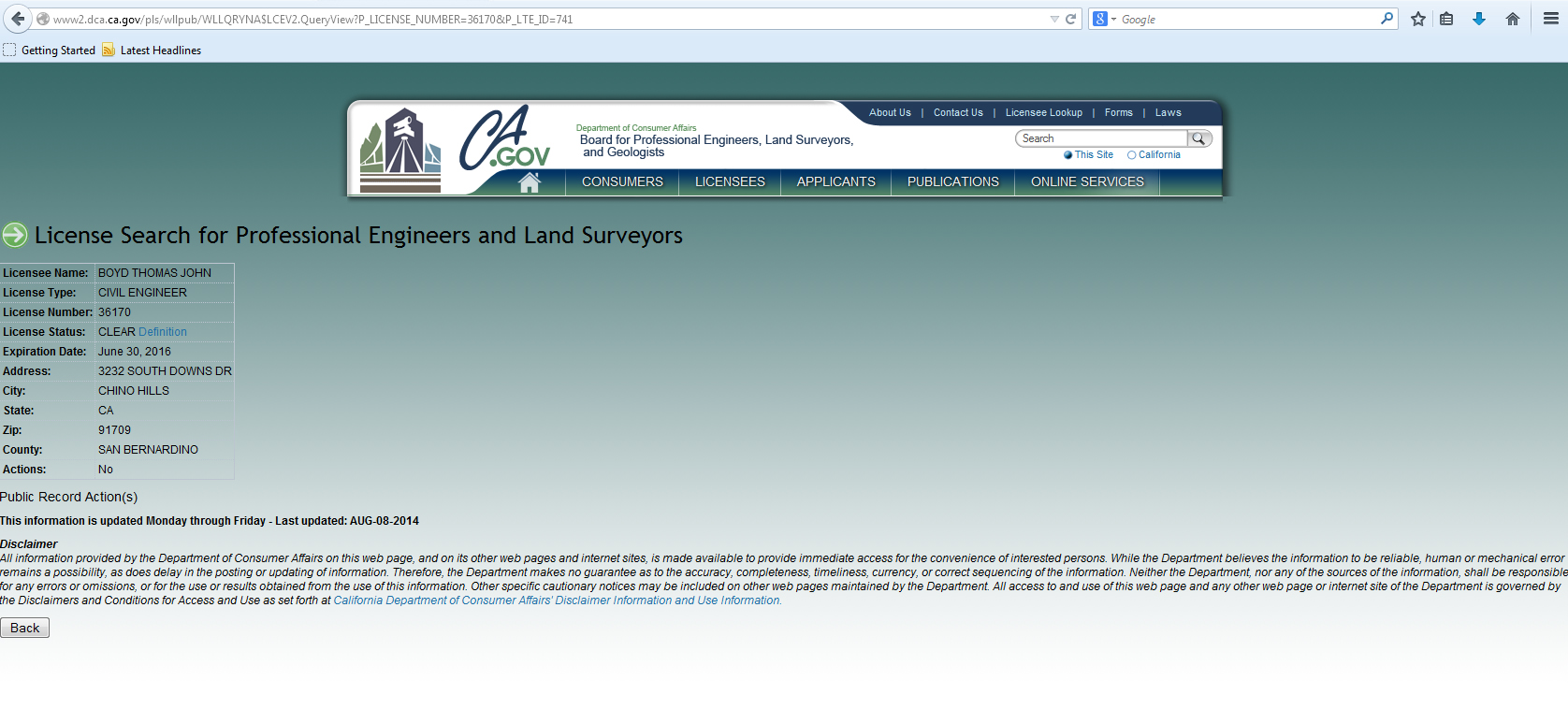 Of course, we find Tom Boyd’s..but Tina English..she doesn’t have a Certificate as a Professional Civil Engineer in the State of California. Unfortunately this is the problem, we have unqualified people placed in the positions of which should be qualified. Don’t you as tax payers think that there is something wrong? If so, you should display your dissent? Isn’t time that you begin to listen to those that the city has labeled as haters?