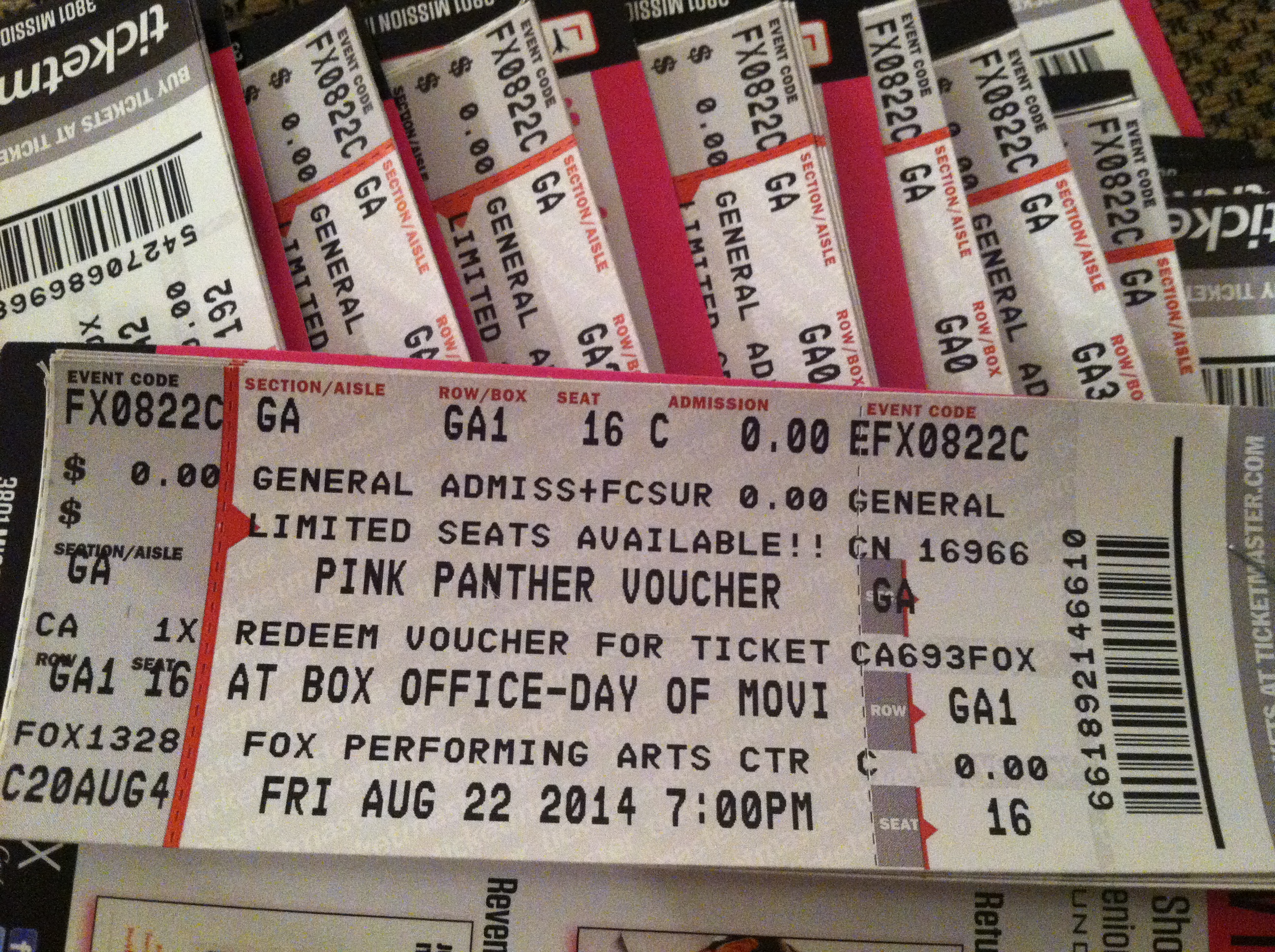 According to the PE, the Fox launched the Pink Panther Festival to begin August 22, 2014 with ticket prices to begin at $7 and up. These just state to redeem voucher for a ticket, I would suspect at the ticket counter.