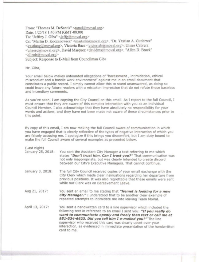 TMC EXCLUSIVE PART I: CITY OF MORENO VALLEY: COUNCILMAN JEFFREY GIBA FILES CLAIM VS. CITY MANAGER TOM DESANTIS AND FRIENDS. » DeSantis directive1