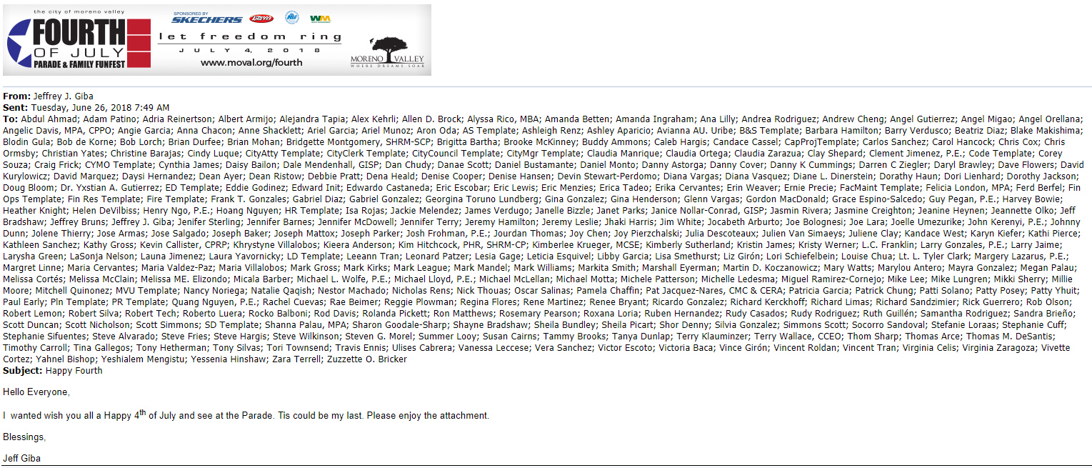 TMC EXCLUSIVE PART I: CITY OF MORENO VALLEY: COUNCILMAN JEFFREY GIBA FILES CLAIM VS. CITY MANAGER TOM DESANTIS AND FRIENDS. » EMAILGIBA