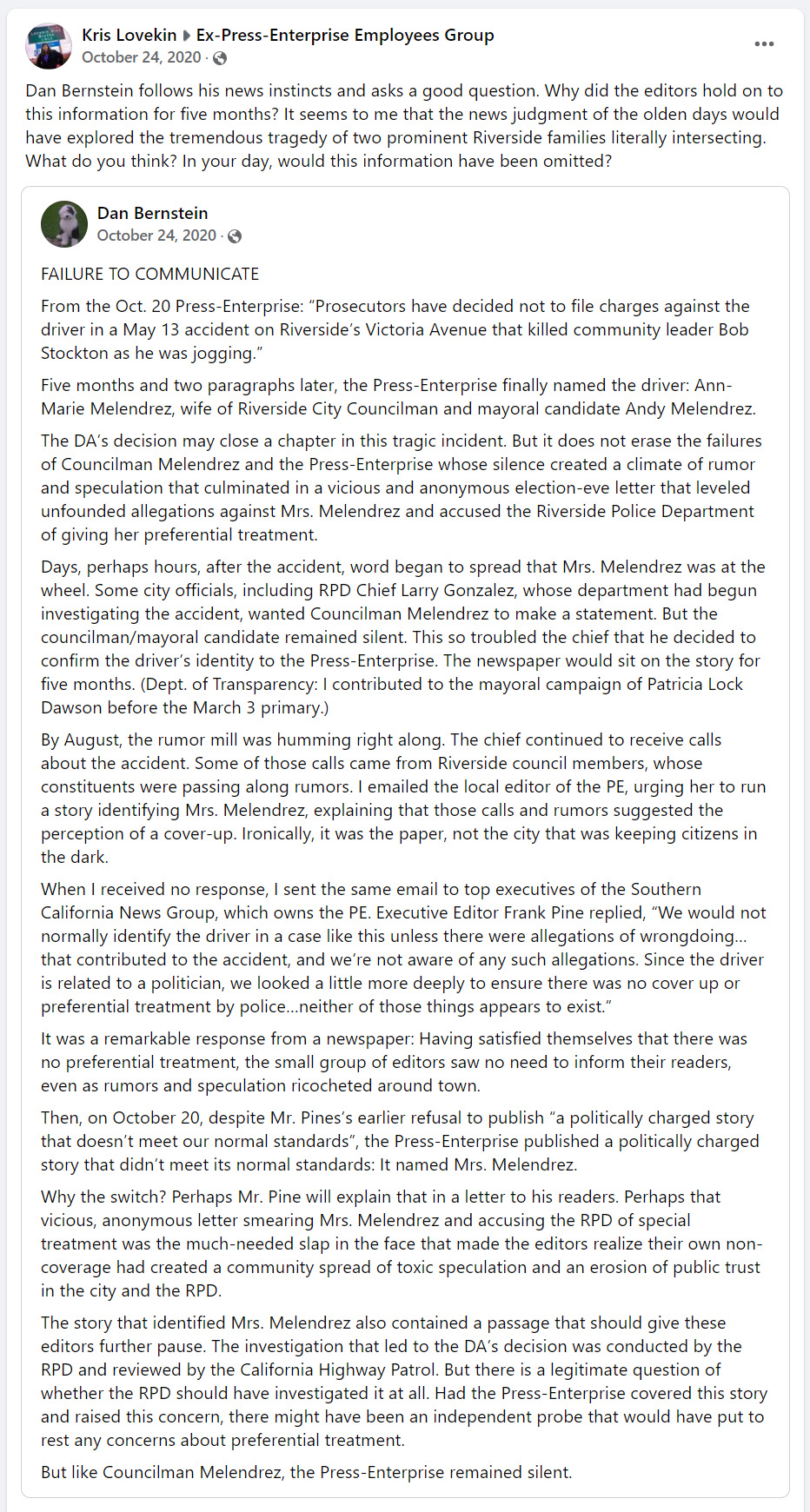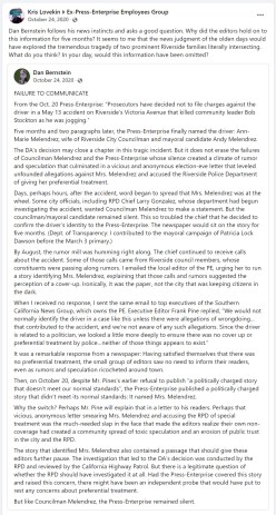 Let’s not forget what former writer for the Press Enterprise, Dan Bernstein said about this and the response to his email from the P.E. Remember, Dan was on board the Press Enterprise when it was actually doing it’s job as the Fourth Branch of Government, now it is has taken readers comments and is known around town as the Pravda Enterprise. One thought, one mind and one agenda. The disgusting fact is it took our story posted October 18, 2021, in order for Pravda Enterprise to post a somewhat factual story October 21, 2021. Of course, there is never a smidgen of mention per our story by Dan Bernstein or Pravda Enterprise; there is no doubt they all read it.
