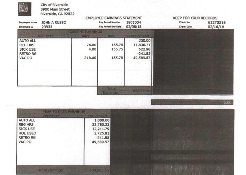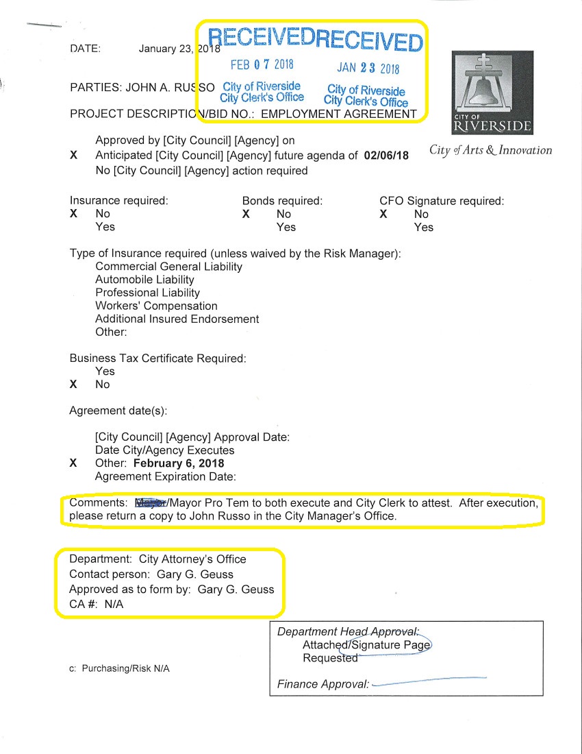 It pays to the the Riverside City Manager: 2-day turnaround time between contract “execution” and money in-the-bank! Someone call the Guinness Book of Records!
