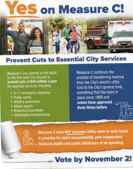 People, that’s why the City will not call it a tax, because they have no legal jurisdiction or right to legally pass a tax. Only the California State Legislature can! That is why Measure C was placed on the ballot as a Charter Amendment. Again they are making the same mistake they did with the General Fund Transfer Water Measure, known as Measure A in 2012. Even if Measure C passes, it will be challenged again…. Simply, because it is Illegal and Constitutionally Forbidden. Our current City Attorney Phaedra Norton knows this, but is misinforming the Council and who ever else who will listen to her.