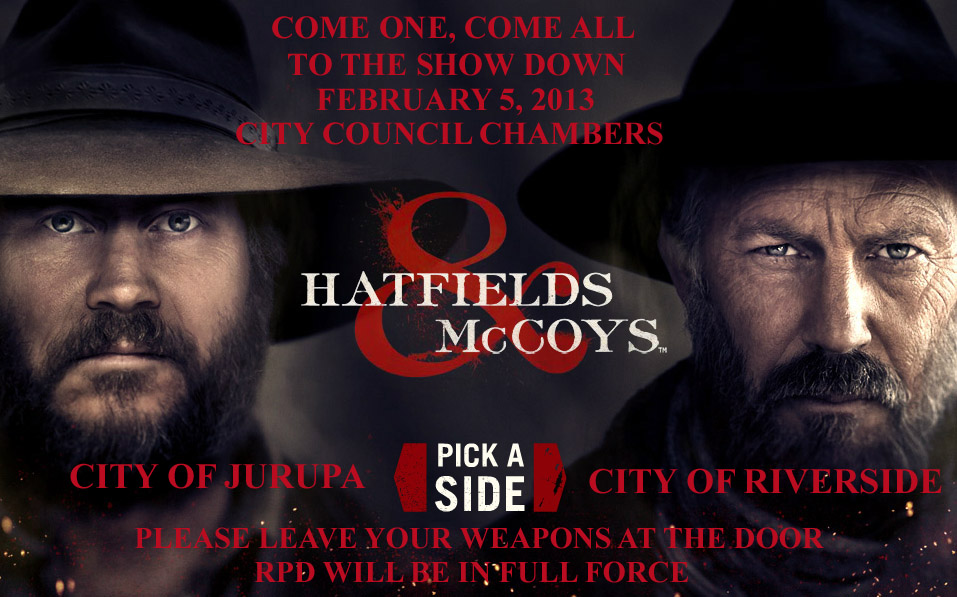 Again, most people thought the City of Riverside were neighbors with the City of Jurupa Valley, and that we were friends being neighboring cities, but is this going to turn out to be another Hatfield’s & McCoys?