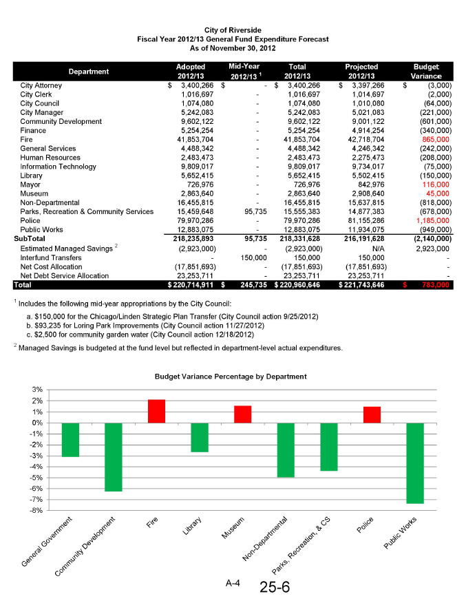 Has the new monthly report format been changed to give the illusion of financial stability for the City of Riverside? In the new report we have sections which appear not to be ‘actual’ but a ‘forecast’, such as the general fund budget forecast, general fund revenue forecast and general fund expenditure forecast.