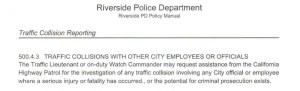 Now back to the shiny object we mentioned the day of the accident (clue: it was the sentence in bold). Let’s take a look at the actual RPD policy regarding traffic collisions involving City officials:
