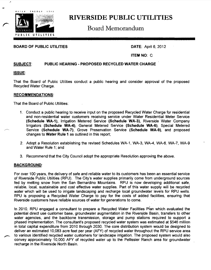 On April 6, 2012 at the Board of Public Utilities Meeting to allow public comment on the issue of the purple pipe. The purple pipe program is a new water reclamation program the city would like to implement, with of course, you paying the bill.