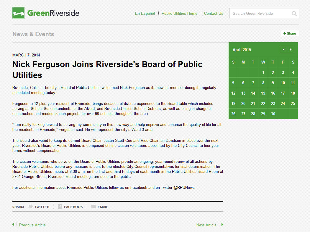 In 2014, Nick Ferguson, who had recently joined the Riverside’s Board of Public Utilities, was all smiles with his new landscaping.