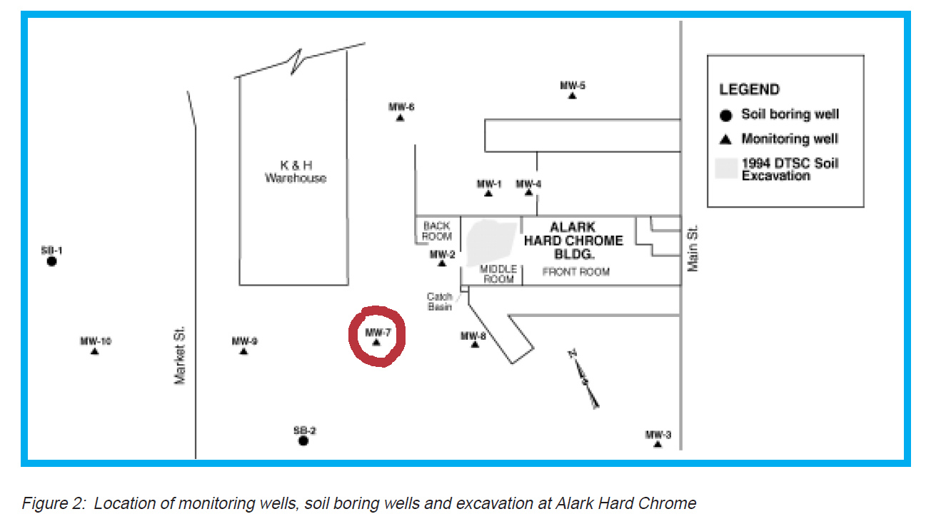 Alark Hard Chrome was a chrome plating shop in the 1970’s located at 2777 Main Street. Soil and groundwater at this sit were contaminated with chromium as a result of spills, discharges and drips of plating solutions on the premises.